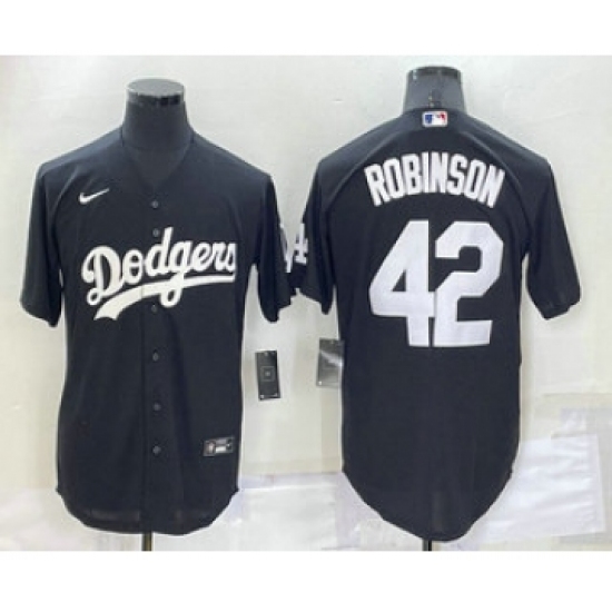 Men's Los Angeles Dodgers #42 Jackie Robinson Black Cool Base Stitched Baseball Jersey
