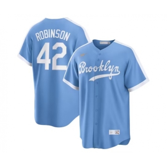 Men's Los Angeles Dodgers #42 Jackie Robinson Light Blue Cool Base Stitched Baseball Jersey