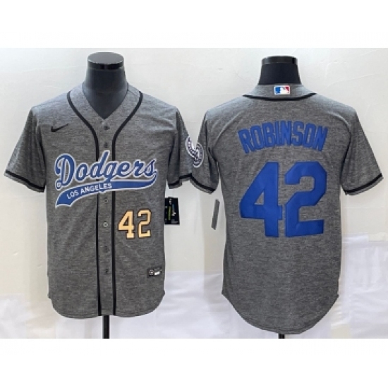 Men's Los Angeles Dodgers #42 Jackie Robinson Number Grey Gridiron Cool Base Stitched Baseball Jersey
