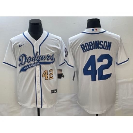 Men's Los Angeles Dodgers #42 Jackie Robinson Number White Cool Base Stitched Baseball Jersey