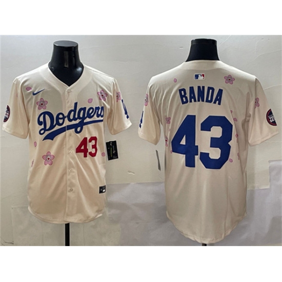 >Men's Los Angeles Dodgers #43 Anthony Banda Cream 2025 Tokyo Series Limited Stitched Baseball Jersey