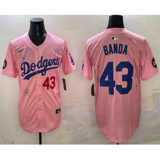 Men's Los Angeles Dodgers #43 Anthony Banda Pink 2025 Tokyo Series Limited Jersey