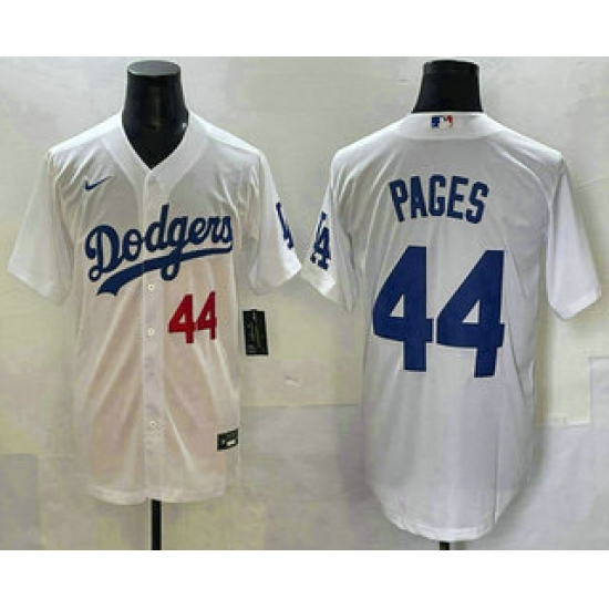 >Men's Los Angeles Dodgers #44 Andy Pages Number White Cool Base Stitched Jersey