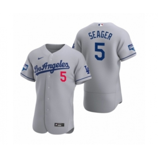 Men's Los Angeles Dodgers #5 Corey Seager Gray 2020 World Series Champions Road Authentic Jersey
