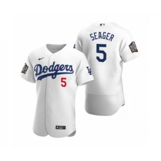 >Men's Los Angeles Dodgers #5 Corey Seager Nike White 2020 World Series Authentic Jersey