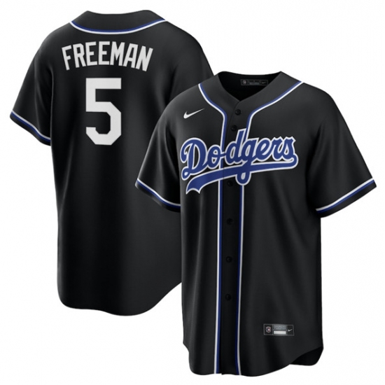 >Men's Los Angeles Dodgers #5 Freddie Freeman Black Lights Out Limited Stitched Baseball Jersey