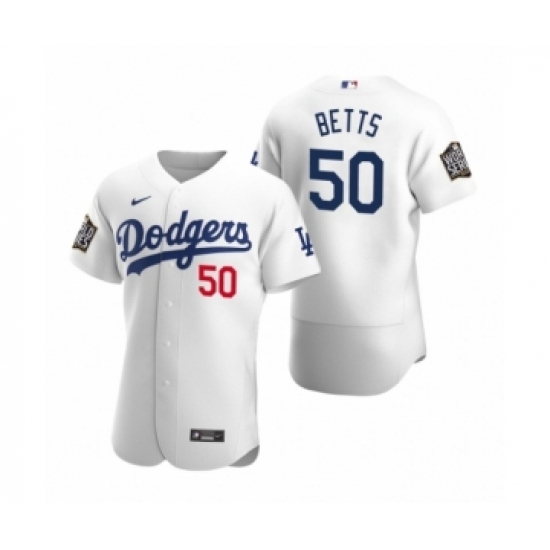 Men's Los Angeles Dodgers #50 Mookie Betts Nike White 2020 World Series Authentic Jersey