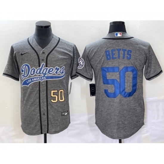 Men's Los Angeles Dodgers #50 Mookie Betts Number Grey Gridiron Cool Base Stitched Baseball Jersey