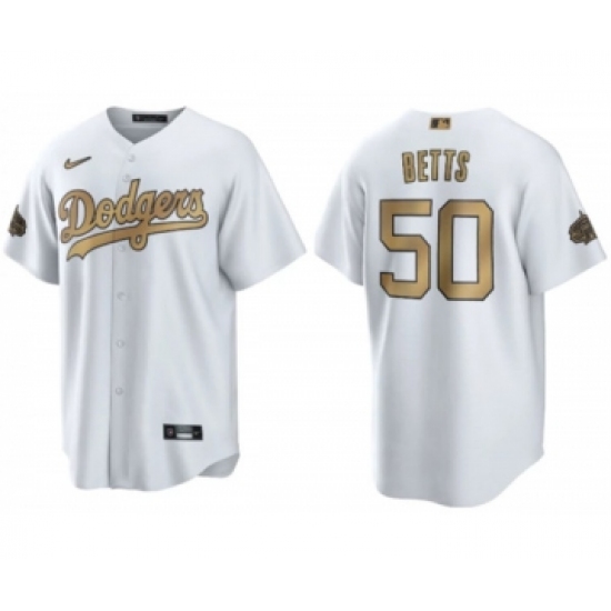 >Men's Los Angeles Dodgers #50 Mookie Betts White 2022 All-Star Cool Base Stitched Baseball Jersey