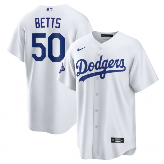 Men's Los Angeles Dodgers #50 Mookie Betts White Home Limited Stitched Baseball Jersey