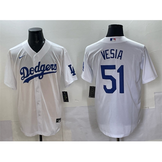 Men's Los Angeles Dodgers #51 Alex Vesia White Cool Base Stitched Baseball Jersey
