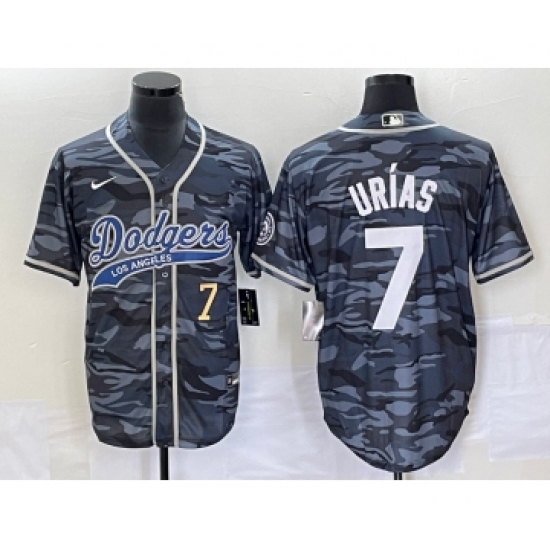 >Men's Los Angeles Dodgers #7 Julio Urias Number Gray Camo Cool Base Stitched Baseball Jersey
