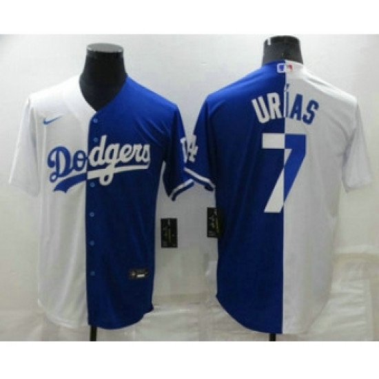 Men's Los Angeles Dodgers #7 Julio Urias White Blue Split Cool Base Stitched Baseball Jersey