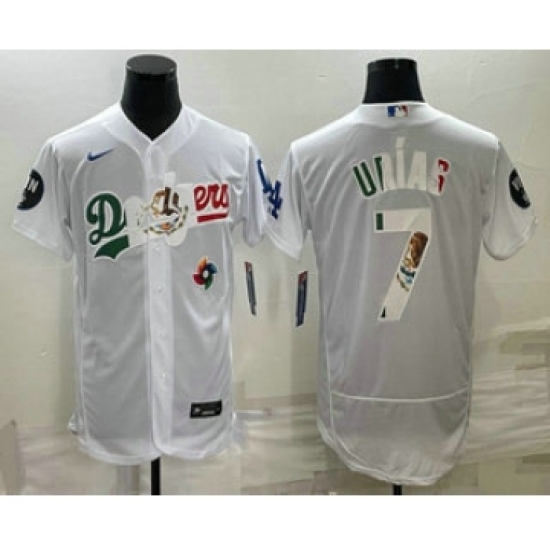 Men's Mexico Baseball #7 Julio Urias 2023 White Blue World Classic Stitched Jerseys