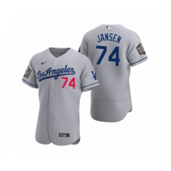 >Men's Los Angeles Dodgers #74 Kenley Jansen Nike Gray 2020 World Series Authentic Road Jersey