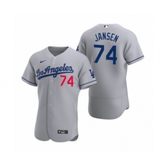 Men's Nike Los Angeles Dodgers #74 Kenley Jansen Gray Road Stitched Baseball Jersey