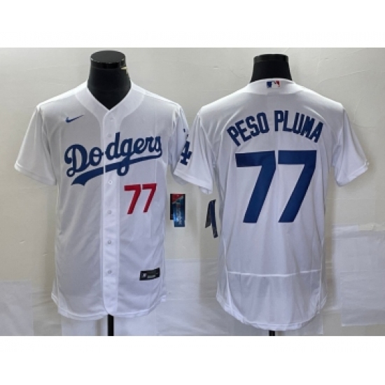 Men's Los Angeles Dodgers #77 Peso Pluma White Stitched Flex Base Nike Jersey
