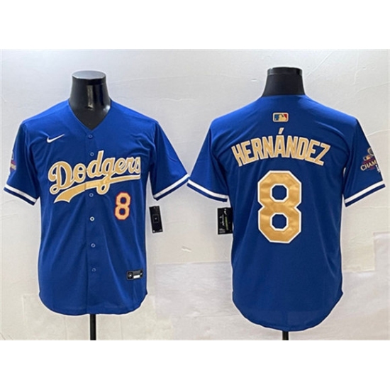 >Men's Los Angeles Dodgers #8 Enrique Hernandez Royal 2025 Gold Collection Limited Stitched Baseball Jersey