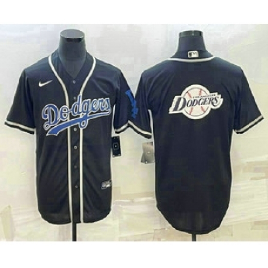 Men's Los Angeles Dodgers Big Logo Black Cool Base Stitched Baseball Jersey1