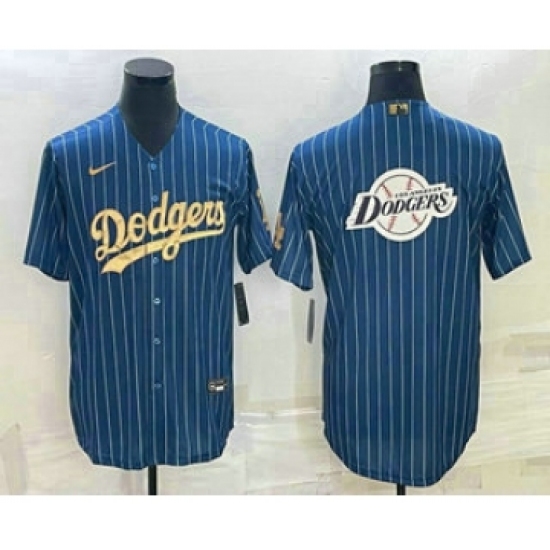 >Men's Los Angeles Dodgers Big Logo Navy Blue Pinstripe Stitched MLB Cool Base Nike Jersey2