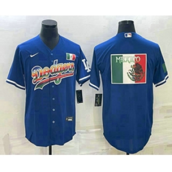 Men's Los Angeles Dodgers Big Logo Rainbow Blue Cool Base Nike Jersey