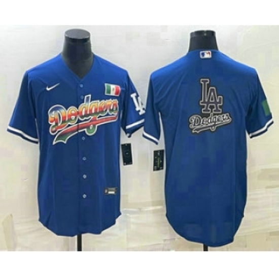 Men's Los Angeles Dodgers Big Logo Rainbow Blue Cool Base Nike Jersey1
