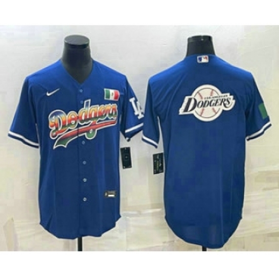 Men's Los Angeles Dodgers Big Logo Rainbow Blue Cool Base Nike Jersey2