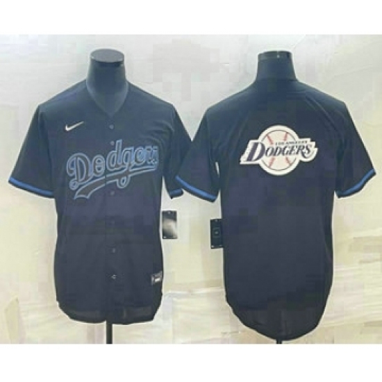 Men's Los Angeles Dodgers Black Team Big Logo Cool Base Stitched Baseball Jersey