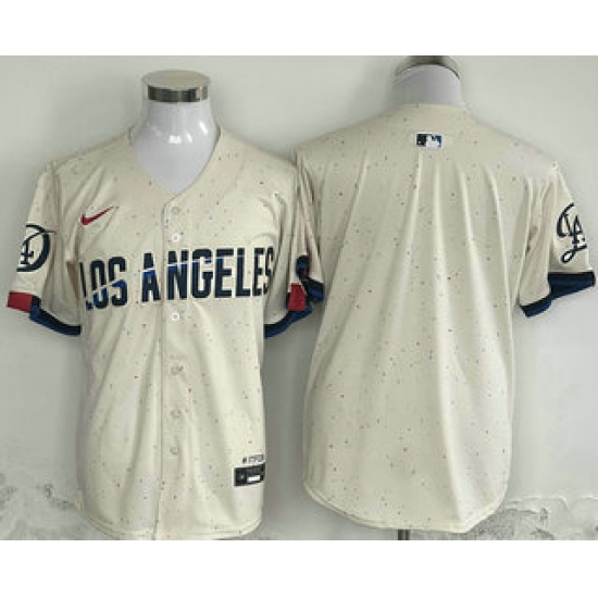 Men's Los Angeles Dodgers Blank Cream 2024 City Connect Limited Stitched Jersey
