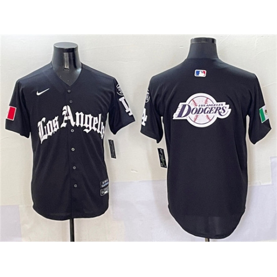 >Men's Los Angeles Dodgers Team Big Logo Black Mexico 2025 LA Gothic Style With Fernando Vapor Premier Limited Stitched Baseball Jersey