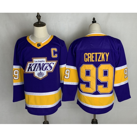 >Men's Los Angeles Kings #99 Wayne Gretzky Authentic Purple Fights Cancer Practice Jersey