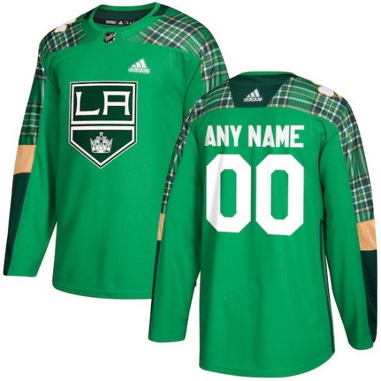 >Men's Los Angeles Kings adidas Green St. Patrick's Day Custom Practice Jersey
