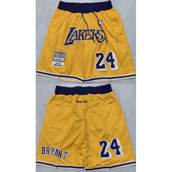 >Men's Los Angeles Lakers #24 Kobe Bryant Yellow Shorts (Run Small)