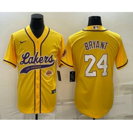 Men's Los Angeles Lakers #24 Kobe Bryant Yellow With Cool Base Stitched Baseball Jerseys