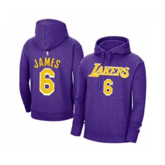 >Men's Los Angeles Lakers #6 LeBron James 2021 Purple Pullover Basketball Hoodie