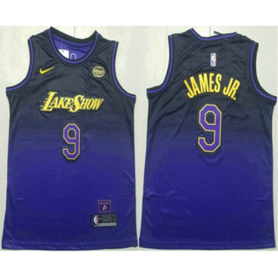 >Men's Los Angeles Lakers #9 Bronny James Jr Purple 2024 City Edition Swingman Sponsor Stitched Jersey