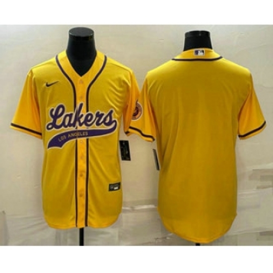 Men's Los Angeles Lakers Blank Yellow Cool Base Stitched Baseball Jersey