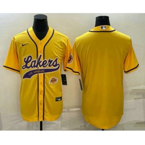 Men's Los Angeles Lakers Blank Yellow With Cool Base Stitched Baseball Jersey