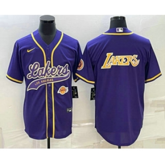 >Men's Los Angeles Lakers Purple Big Logo With Cool Base Stitched Baseball Jerseys