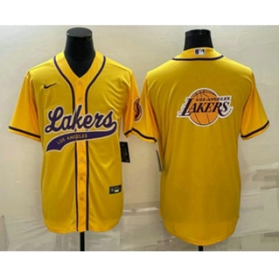 Men's Los Angeles Lakers Yellow Team Big Logo Cool Base Stitched Baseball Jersey