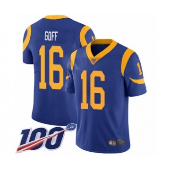 Men's Los Angeles Rams #16 Jared Goff Royal Blue Alternate Vapor Untouchable Limited Player 100th Season Football Jersey