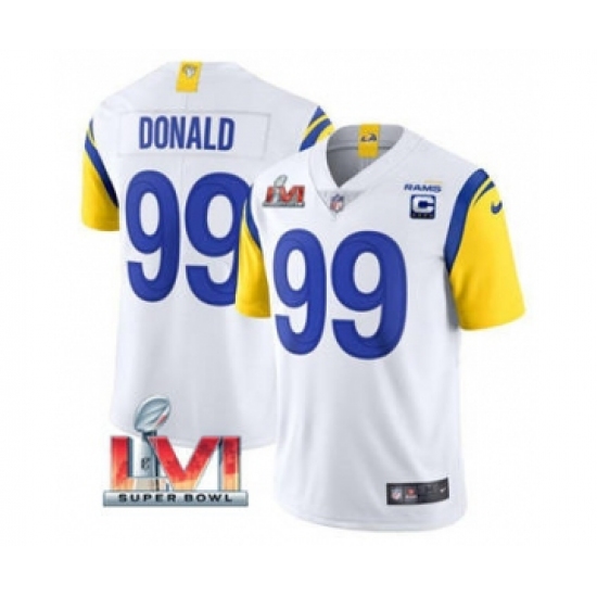 Men's Los Angeles Rams #99 Aaron Donald White 2022 With C Patch Super Bowl LVI Vapor Limited Jersey