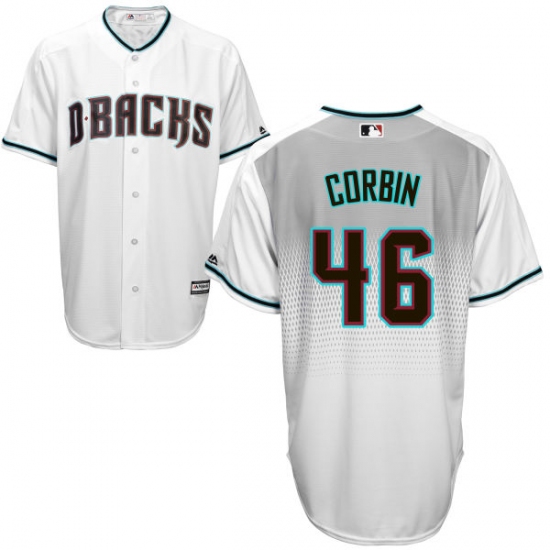 Men's Majestic Arizona Diamondbacks #46 Patrick Corbin Replica White/Capri Cool Base MLB Jersey