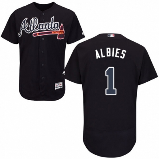 Men's Majestic Atlanta Braves #1 Ozzie Albies Navy Blue Alternate Flex Base Authentic Collection MLB Jersey