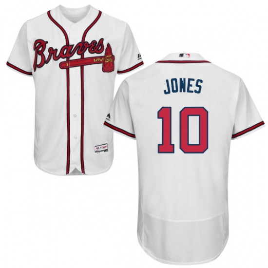 Men's Majestic Atlanta Braves #10 Chipper Jones White Home Flex Base Authentic Collection MLB Jersey