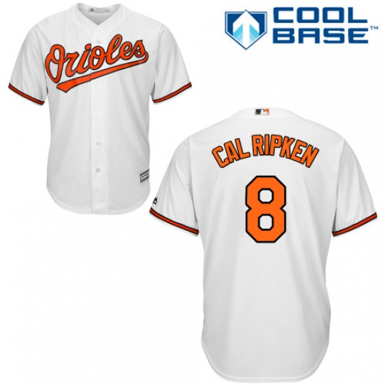 Home>MLB>Baltimore Orioles>Cal Ripken>Men's Majestic Baltimore Orioles #8 Cal Ripken Replica White Home Cool Base MLB Jersey