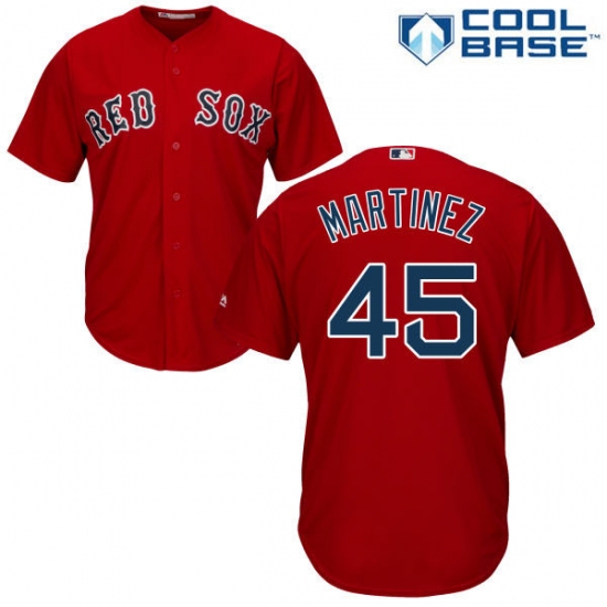 Home>MLB>Boston Red Sox>Pedro Martinez>Men's Majestic Boston Red Sox #45 Pedro Martinez Replica Red Alternate Home Cool Base MLB Jersey