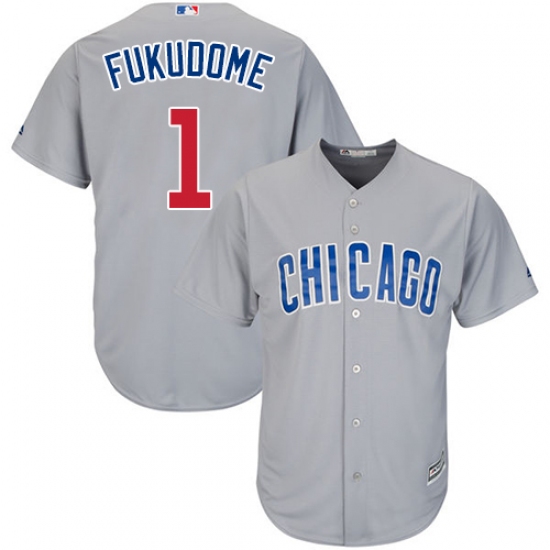Men's Majestic Chicago Cubs #1 Kosuke Fukudome Replica Grey Road Cool Base MLB Jersey