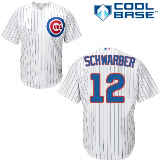 Home>MLB>Chicago Cubs>Kyle Schwarber>Men's Majestic Chicago Cubs #12 Kyle Schwarber Replica White Home Cool Base MLB Jersey