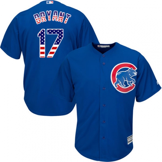 Home>MLB>Chicago Cubs>Kris Bryant>Men's Majestic Chicago Cubs #17 Kris Bryant Authentic Royal Blue USA Flag Fashion MLB Jersey